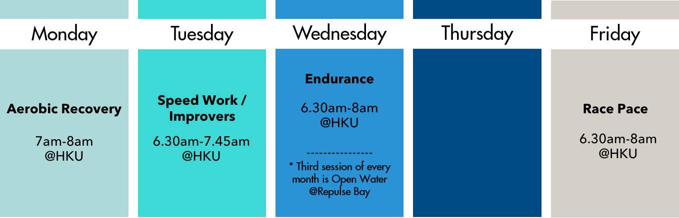 On the first Wednesday of each month, pool squads move to Repulse Bay Beach where you will receive more of a race specific experience in the elements.